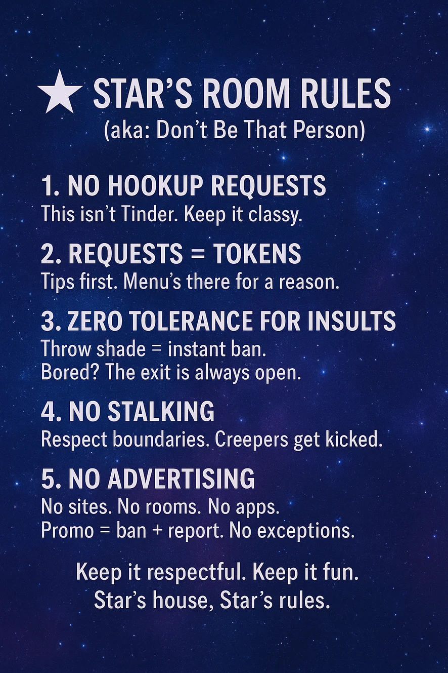 My shows are priced fair for both me and my spenders🙂‍↕️ DON'T UNDER PRICE MY SHOWS;DON'T ASK FOR FREE SHOWS cause other guests pay for them💋 Let's respect each other and have a good time together on here🤗🥰
