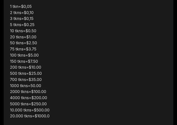 TOKES VS THEIR DOLLAR AMOUNT:I appreciate all tokens but 1-5 tokens aren't for show requests